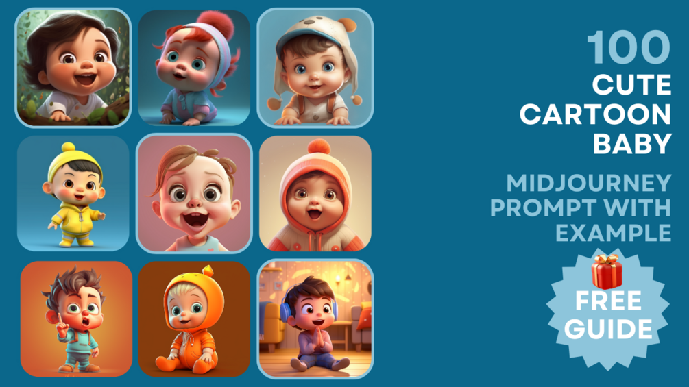 100 Cute Cartoon Baby Midjourney Prompts, 2023 Professional Midjourney Prompt, AI Art, Learn Midjourney, Digital Art
